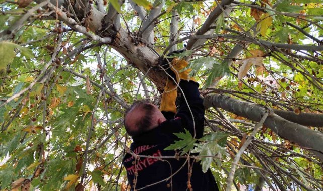 Ağaçta mahsur kalan kedi itfaiyeyi seferber etti