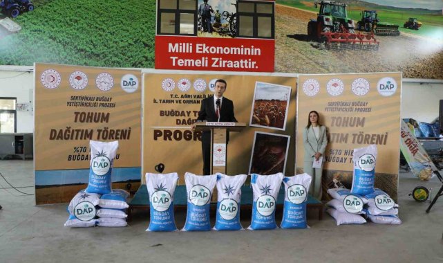 Ağrı'da yüzde yetmiş hibeli "Sertifikalı Buğday Yetiştiriciliğinin Yaygınlaştırılması Projesi" kapsamında 400 çiftçiye toplam 200 ton buğday tohumu dağıtıldı.