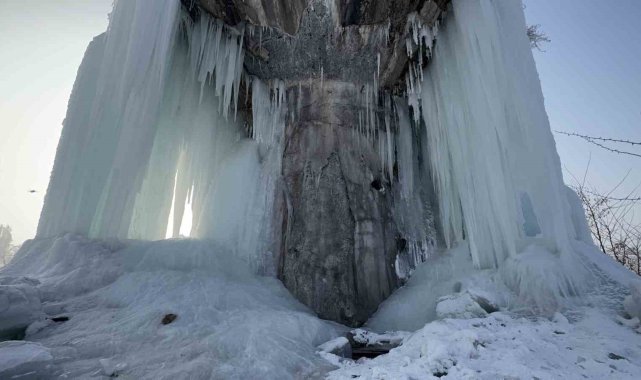 Ağrı'da etkili olan dondurucu soğuklar nedeniyle su deposu dondu, 15 metre uzunluğunda dev buz sarkıtları oluştu.Ağrı'da etkisini gösteren dondurucu soğuklar günlük yaşamı olumsuz etkilemeye devam ediyor. Şehir merkezindeki bir su deposu eksi 20 dereceyi bulan soğuklar nedeniyle tamamen dondu. 15 metre uzunluğunda dev buz sarkıtlarının oluştuğu su deposu görsel şölen sunarken, soğukların ne derece etkili olduğunu gözler önüne serdi.