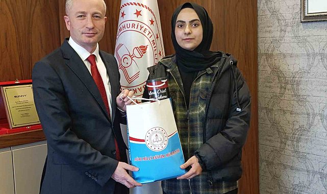 Ağrı İl Milli Eğitim Müdürü Hasan Kökrek, "Okulum Beni Bekler" projesi kapsamında başarılı bir şekilde eğitimini sürdüren Semerkant Mesleki ve Teknik Anadolu Lisesi 9. sınıf öğrencisi Zeynep Erçek'i makamında kabul ederek ödüllendirdi.