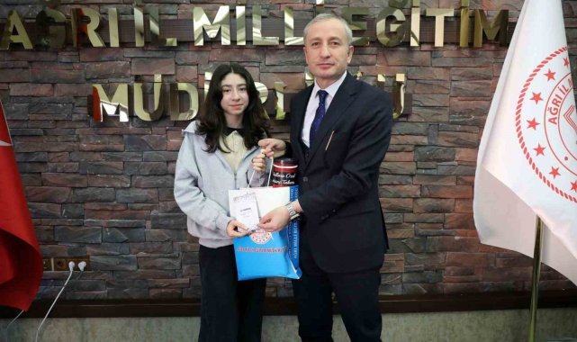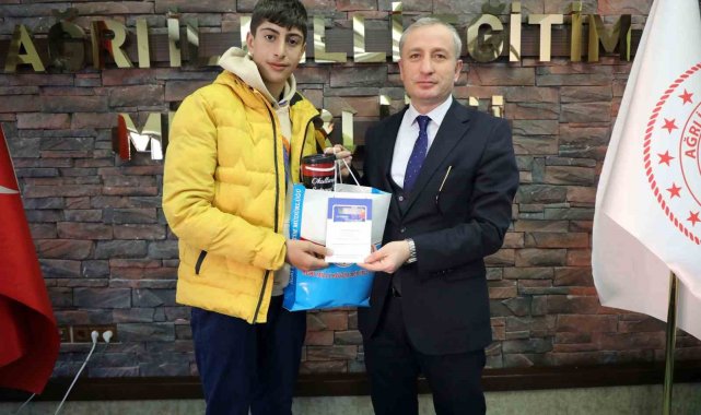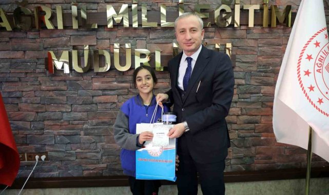 Ağrı İl Milli Eğitim Müdürü Hasan Kökrek, "Dilimizin Zenginlikleri" projesi kapsamında düzenlenen yarışmaların birincilerine ödüllerini verdi.