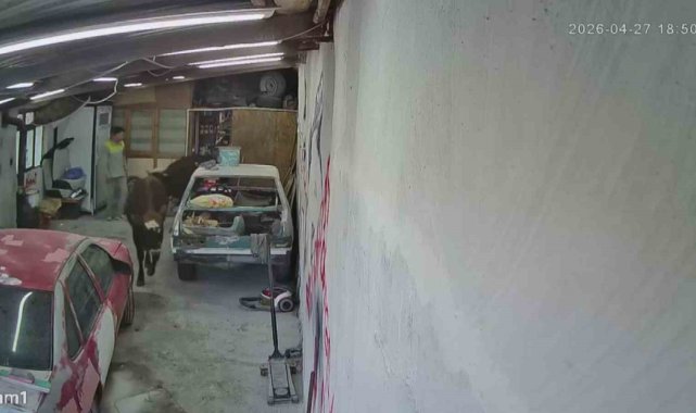 Ahırdan kaçan danalar oto tamirciyi bastı, görgü tanığı o anları anlattı: "Nazikçe geldiler, nazikçe gittiler"