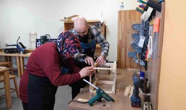 Ahşap atölyesinde hem hobi hem de el becerisi kazanıyorlar