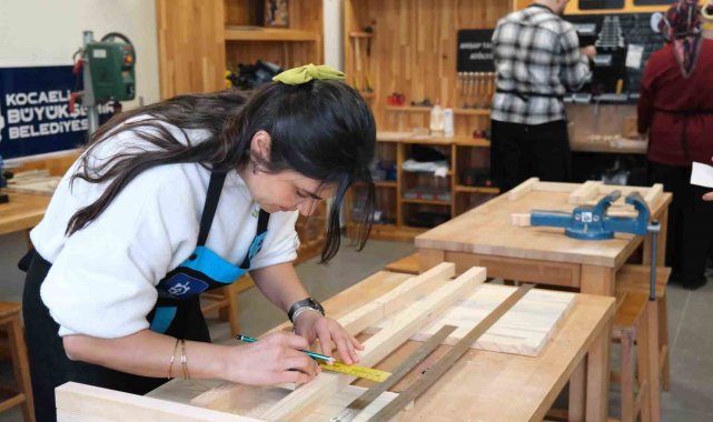 Kocaeli'de düzenlenen ahşap atölyesine katılan kadınlar, hem hobi ediniyor hem de el becerilerini geliştiriyor.