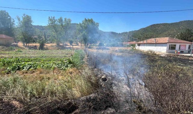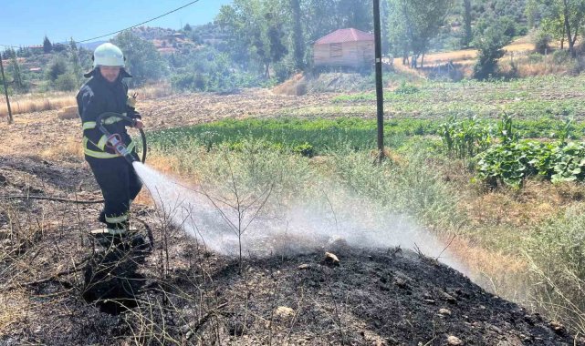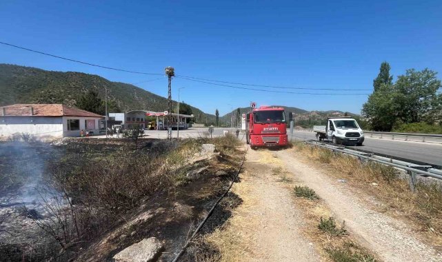Akaryakıt istasyonu yanında çıkan örtü yangını büyümeden söndürüldü