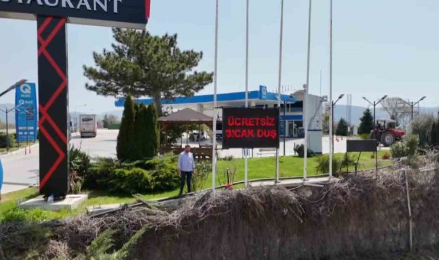 Amasya'da bir akaryakıt istasyonunda ücretsiz sıcak duş imkanı sunuluyor. Fiyat panosundaki 'ücretsiz sıcak duş' yazısını gören şaşırıp kalıyor. 5 yıldır süren sıradışı uygulama en çok uzun yol şoförlerini sevindiriyor.Amasya – Suluova karayolunda akaryakıt ürünlerinin fiyat tarifesinin yer aldığı pano sıradışı bir uygulamaya davetiye çıkarıyor. Gece, gündüz fark edilebilen 'ücretsiz sıcak duş' yazısını gören şaşırıp kalıyor. Merak edenler istasyondaki 2 duş kabiniyle karşılaşıyor. Duş yapan sürücülere çay da ikram ediliyor."Dua etsinler yeter"Uzun yollarda direksiyon sallayan tır ve kamyon şoförlerinin yaşadığı mağduriyeti gözlemlemesi sonrası 5 yıl önce başlattığı ücretsiz uygulamayı sürdürdüğünü belirten akaryakıt istasyonu sahibi Adnan Öksüz, "Şoför arkadaşlarımız günler boyunca duş alma imkanı bulamıyor. Uzun yollarda dinlenemiyor. Müşterimiz olsun, olmasın herkes sıcak duş alabilir. Şampuanı, havlusu da bizden. Dua etsinler yeter" dedi."Gelene, geçene tavsiye ediyorum"Tabelasındaki yazıyı ilk gördüğünde şaşırdığı istasyona yolu düştükçe uğrayıp duş aldığını anlatan tır şoförü Mehmet Emin Karaköse, "Gelene, geçene tavsiye ediyorum. Geldiğimiz zaman bizlerde hijyenik ortamda duş alıp istirahat ettikten sonra yolumuza devam ediyoruz" diye konuştu."İnşallah örnek olur"Duş kabinlerinin aktif şekilde kullanıldığına değinen Arif Davulcu da, "İnşallah örnek olur. Diğer alanlarda da böyle çalışmalar olur. Vatandaşlar mutlu. İşletmeyi tebrik ediyorum" şeklinde konuştu.