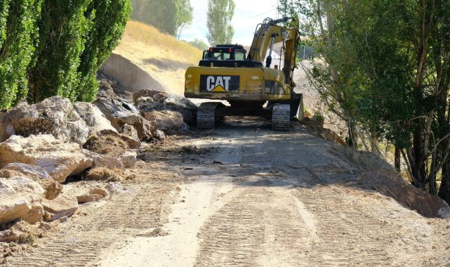Akçaören yolunda altyapı güçlendirme çalışmaları sürüyor