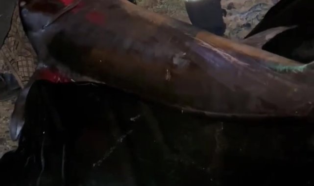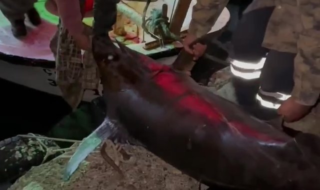 Akdeniz'de oltasına takılan dev kılıç balığı 115 kilogram geldi