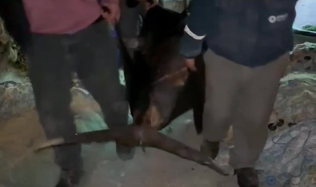 Hatay'da balıkçılık yapan Mustafa Oktay, Akdeniz'de oltasına takılan bir buçuk metre uzunluğundaki 115 kilogram ağırlığındaki kılıç balığını 3 arkadaşıyla birlikte 2 buçuk saat süren çalışmayla teknesine almayı başardı.Dörtyol ilçesinde balıkçılık yapan Mustafa Oktay ve ekibi, Akdeniz açıklarında gerçekleştirilen av sırasında devasa büyüklükte bir kılıç balığıyla karşılaştı. Babasından devraldığı mesleği 35 yıldır sürdüren Oktay, yaklaşık 115 kilogram ağırlığında ve 1,5 metre uzunluğunda olan dev kılıç balığını tekneye almak için arkadaşlarıyla birlikte adeta zamanla yarıştı. Avın başlamasından itibaren 2 buçuk saat boyunca mücadele eden balıkçılar, güçlü yapısı ve direnç göstermesiyle bilinen kılıç balığını büyük bir uğraş sonucu tekneye çekmeyi başardı. Kıyıya getirildiğinde dört kişinin yardımıyla taşınabilen dev balık, hem boyutu hem de ağırlığıyla bölgede son yılların en dikkat çekici avlarından biri olarak kayıtlara geçti. Kıyıya çıkarılırken dört kişinin yardımıyla taşınan dev balık, daha sonra İzmir'de bir işletmeye kilosu 500 TL'den toplam 65 bin TL karşılığında satıldı.Yaklaşık 35 yıldır balıkçılık yaptığını belirten Mustafa Oktay, "Hatay Dörtyol'da profesyonel olarak balıkçılık yapıyoruz. Kılıç balığı avcı bir balık ve oldukça değerli. Yılda bir ya da iki kez denk gelebilen istisnai bir tür. Dört kişi birlikte 2 buçuk saat uğraşarak tekneye alabildik. İzmir'deki restoranlara toptan olarak gönderdik. Toplamda 115 kilo geldi ve yaklaşık 65 bin TL'ye sattık. Mesleğimiz baba mesleği, yıllardır bu işin içindeyiz. Zaman zaman teknelerimizde balığa çıkıyoruz ve bu tür büyük avlarla da karşılaşabiliyoruz" dedi.