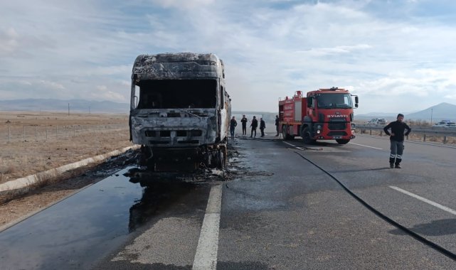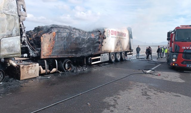 Aksaray'da otoyolda seyir halindeyken aniden alev alan mandalina yüklü tır yanarak kül oldu.