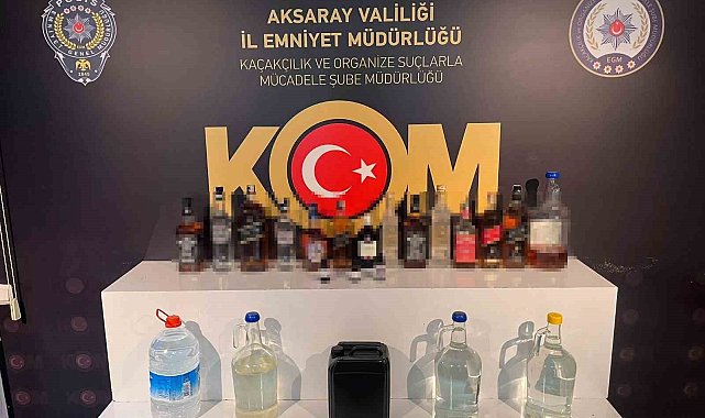 Aksaray'da bir iş yerine operasyon düzenleyen polis 30 litre sahte alkol ve sahte içkiler ele geçirdi.Edinilen bilgiye göre, kaçakçılık olaylarının önlenmesi amacıyla çeşitli çalışmalar yapan İl Emniyet Müdürlüğü Kaçakçılık ve Organize Suçlarla Mücadele (KOM) Şubesi ekipleri Aksaray merkezde bir iş yerinde sahte alkol ve içkilerin satıldığı bilgisine ulaştı. Bunun üzerine Aksaray Cumhuriyet Başsavcılığı koordinesinde harekete geçen KOM ekipleri sabahın erken saatlerinde iş yerine operasyon düzenledi. Gerçekleştirilen operasyonda R.T. (60) isimli iş yeri işletmecisi yakalanarak gözaltına alınırken yapılan aramalarda 3 adet içki yapımında kullanılan alkol kiti, 5 litre etil alkol, 8 litre kaçak içki ve 30 litre sahte alkol ele geçirildi.Gözaltına alınan şüpheli sorgulanmak üzere İl Emniyet Müdürlüğüne götürülürken 5607 Sayılı Kanuna Muhalefet suçundan işlem başlatıldı.