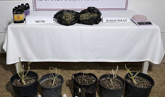 Antalya'da jandarma ekiplerince düzenlenen uyuşturucu operasyonunda çeşitli miktarda uyuşturucu madde ve üretim ekipmanı ele geçirildi.Antalya İl Jandarma Komutanlığı ekipleri, Antalya Cumhuriyet Başsavcılığı talimatları doğrultusunda uyuşturucuyla mücadele kapsamında Aksu ilçesinde çalışma yürüttü. Bu kapsamda T.D. isimli şüphelinin ikametinde ve serasında yapılan aramalarda, 243 gram skunk, 5 saksı içerisinde yetiştirilmiş skunk, 1 hassas terazi, 1 iklimlendirme çadırı, 2 LED ışıklandırma sistemi, 1 termometre, 2 folyo havalandırma hortumu ve 1 vantilatör ele geçirildi.Olayla ilgili soruşturma başlatıldı.
