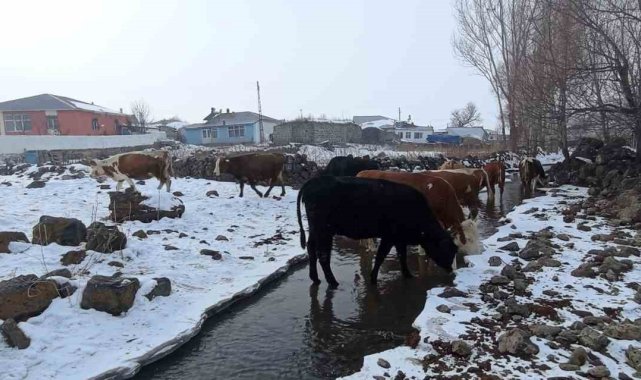 Kars'ın Akyaka ilçesinde etkili olan dondurucu soğuklar hayatı olumsuz yönde etkiliyor. Geceleri eksi 15 derecelere kadar düşen hava sıcaklıkları, bölgede bulunan dereleri dondurdu. Çiftçiler, hayvanlarının su ihtiyacını karşılamak için yoğun çaba gösteriyor.