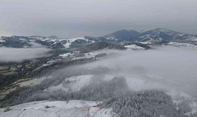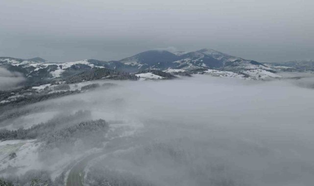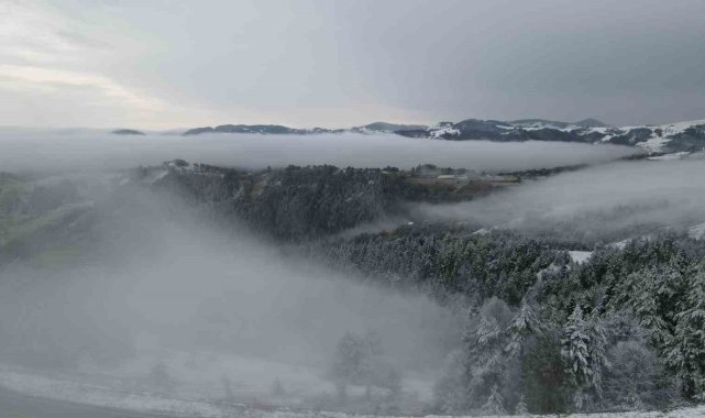 Samsun'un Alaçam ilçesinde yer alan Kızlan Yaylası, kış mevsiminde kar ve sisin birleşimiyle ortaya çıkan doyumsuz manzaralarla dikkat çekiyor.