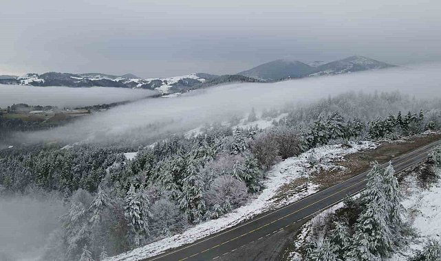 Alaçam Kızlan Yaylası'nda kar ve sis güzelliği