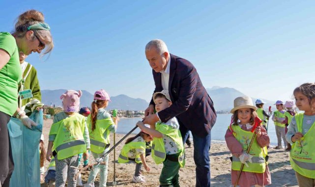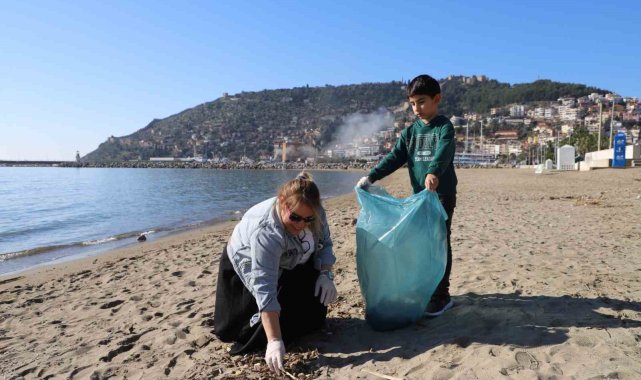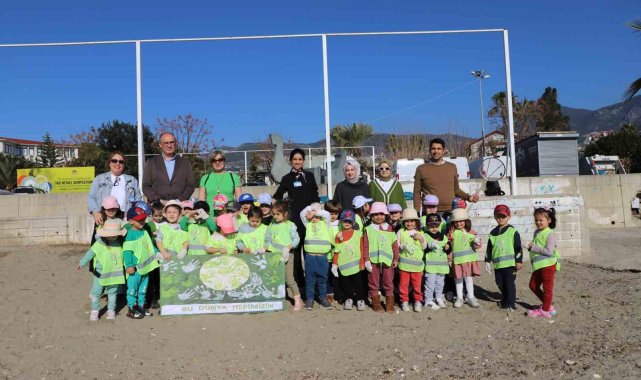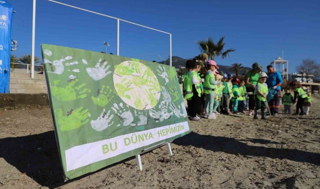 Alanya Belediye Başkanı Osman Tarık Özçelik ile birlikte sahil temizliği yapan Belediye Rüya İpekten ve Saadet Çelik Kreş ve Çocuk Akademisi öğrencileri, 'Bu Dünya Hepimizin' mesajı verdiler.