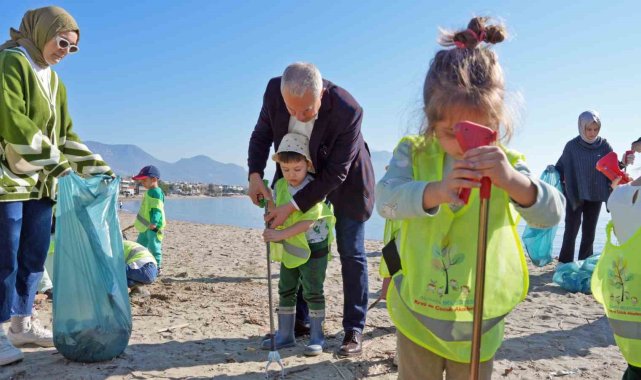 Alanya Belediye Başkanı Osman Tarık Özçelik ile birlikte sahil temizliği yapan Belediye Rüya İpekten ve Saadet Çelik Kreş ve Çocuk Akademisi öğrencileri, 'Bu Dünya Hepimizin' mesajı verdiler.Alanya Belediyesi Rüya İpekten ve Saadet Çelik Kreş ve Çocuk Akademisi öğrencileri, anlamlı bir farkındalık etkinliğine imza attılar. Belediye Temizlik İşleri Müdürlüğü personelinin desteğiyle yapılan etkinlikte, Belediye binası arkasında bulunan Galip Dere Plajı'nda minik öğrenciler temizlik çalışması yaptı. Etkinliğe, Belediye Başkanı Osman Tarık Özçelik, Başkan Danışmanları Faruk Konukçu ve Sadık Dizdaroğlu ile Sosyal Yardım İşleri Müdürü Hüseyin Doğan katıldı.Herkese örnek olmalıMinik öğrenciler kendi elleriyle boyadıkları 'Bu Dünya Hepimizin' afişini astı ve temizlik çalışması gerçekleştirdi. Minik öğrencilere ve öğretmenlerine böyle bir farkındalık etkinliği düzenledikleri için teşekkür eden Başkan Özçelik, "Bir sonraki etkinliğe ailelerinizi de bekliyoruz. Denizlerimizi ve sahillerimizi temiz tutmalıyız. Doğamızı, çevremizi hep beraber koruyacağız. Sizler de büyüklerinizi uyarmalısınız. Böyle anlamlı bir etkinlik tüm vatandaşlara örnek olacaktır" dedi.