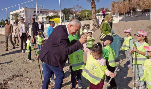 Alanya Belediye Başkanı Özçelik, çocuklar ile sahili temizledi