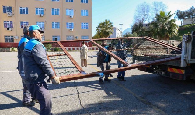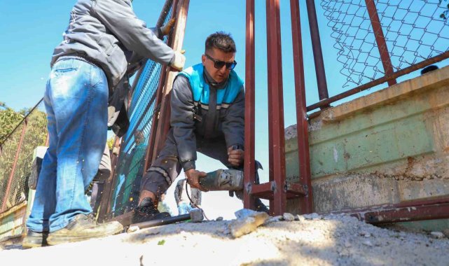 Alanya Belediyesi, Tosmur Fatma Özmüftüoğlu İlkokulu'nun arka bahçesine açılan kapısını sürgülü demir kapıyla değiştirdi.