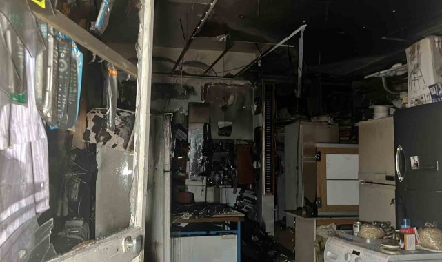 Alanya'da beyaz eşya tamir dükkanında çıkan yangın korkuttu