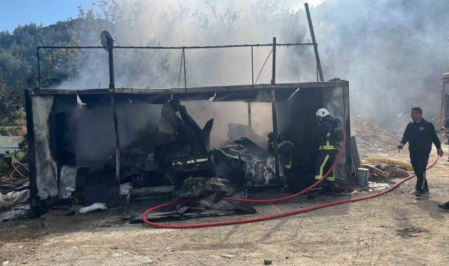 Alanya'da işçilerin kaldığı konteyner alevlere teslim oldu