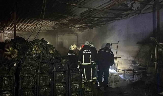 Antalya'nın Alanya ilçesinde bulunan Demirtaş Sebze ve Meyve Hali'nde muz sarartma tesisi deposunda çıkan yangın, itfaiye ekiplerinin müdahalesiyle kontrol altına alındı. Yangında kimse yaralanmazken tonlarca muz zarar gördü.