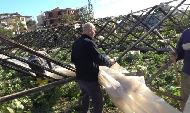 Antalya'nın Alanya ilçesinde etkili olan sağanak ve fırtına, sebze ile meyve seraları vurdu.Meteoroloji Genel Müdürlüğü'nün turuncu kod ile uyardığı Antalya'nın Alanya ilçesinde bazı yerleşim yerlerinde meydana gelen sağanak ve fırtına seralara zarara neden oldu. Alanya, günlerce yağan yağmura teslim olurken, merkeze bağlı Akdam Mahallesinde seralar fırtına nedeniyle yırtıldı. Serada bulunan sebze ve meyveler zarar gördü. Seralarda domatesler fırtınadan ve aşırı yağıştan etkilendiği için üreticiler sebzeleri kurtarmak için erken hasat ettiler. Fırtınaya teslim olan muz seraları rüzgarın ve yağışın etkisiyle çökerken, kimi yerlerde hasadı olmamış muzlar kullanılamaz hale geldi. Vatandaşlar yağıştan ve fırtınadan etkilenen seralarda birbirlerine yardım ederek yaraları birlikte sarıyorlar.Yaşanan sel ve fırtınadan dolayı zarar gören gören seralar için üreticiler yardım istedi.Akdam mahallesinde domates üreticisi Ahmet Partilioğlu, ''Dün 10.30 gibi başladı 20 dakika içerisinde bir şey kalmadı'' diyerek yetkilerden yardım istediğini aktardı. Aynı mahallede babasına yardım etmek için ilçeden gelen Alihan Partilioğlu da "Dün talihsiz bir olay yaşadık, bizim geçim kaynağımız bu seralar, yetkilerden yardım ve yerli üretimi desteklemelerini istiyoruz. Kısacası burada bir tufan oldu" diye konuştu.Öte yandan, fırtınaya teslim olan Akdam Mahallesinde rüzgarın etkisi ağaçların kırılmasına neden oldu.