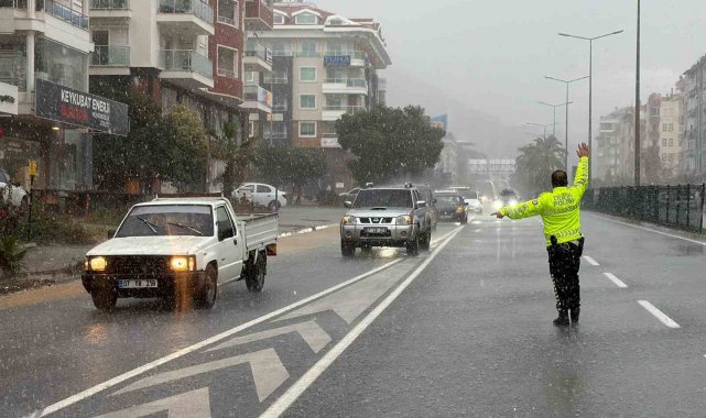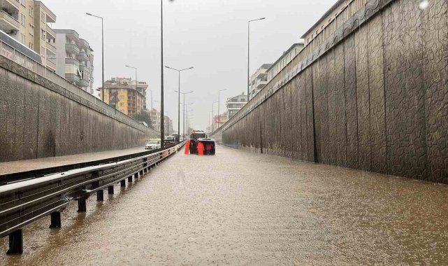 Antalya'nın Alanya ilçesinde dün akşam saatlerinde başlayan sağanak yağış, bugün öğleden sonra şiddetini artırarak yaşamı olumsuz etkiledi.Meteoroloji Genel Müdürlüğünün sarı kodla uyardığı Alanya'da dün akşam saatlerinde başlayan yağmur bugün itibariyle devam etti. Şehir merkezinde yer yer aşır yağıştan dolayı yollarda su birikintisi oluşurken bazı yerlerde ise yağıştan dolayı rögar kapakları taştı. D-400 karayolu Keykubat Caddesi üzerindeki alt geçitte bir araç yoğun yağış nedeniyle mahsur kaldı. İhbar üzerine olay yerine sevk edilen itfaiye ekipleri, sürücüyü güvenli şekilde çıkararak aracı bulunduğu yerden kaldırdı. Mahsur kalan araca yardım için bölgeye yönlendirilen çekici ise ilerlediği sırada aşırı yağıştan etkilenerek yine alt geçitte mahsur kaldı.Öte yandan polis ekipleri, yağışın etkisini sürdürmesi nedeniyle trafikte olumsuzluk yaşanmaması için bölgede kontrollü geçiş sağlıyor.