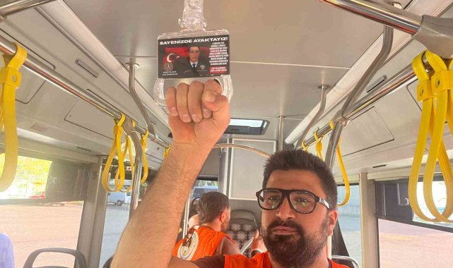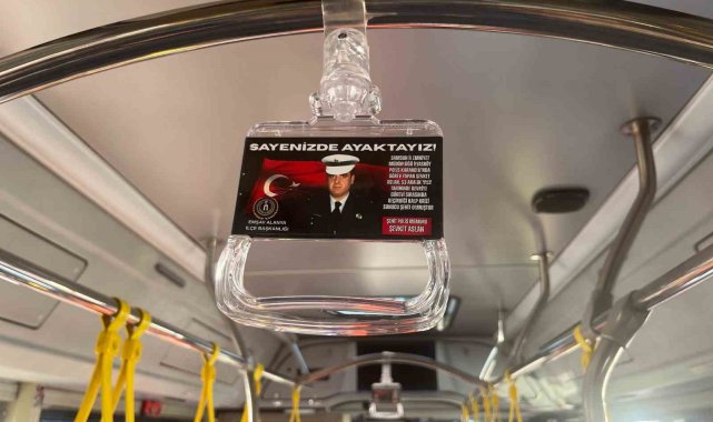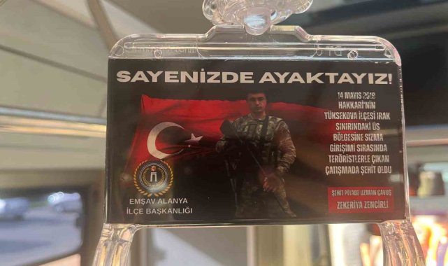 Antalya'nın Alanya ilçesinde, şehit asker ve polislerin fotoğrafları ile bilgilerinin yer aldığı özel kartlar ve görseller otobüs tutamaçlarına basılarak 90 halk otobüsüne takıldı.