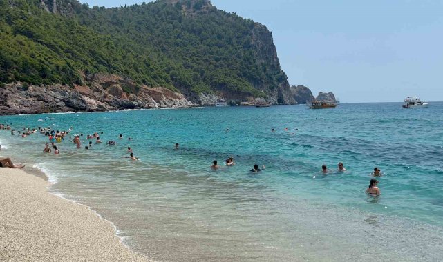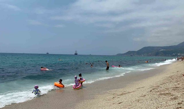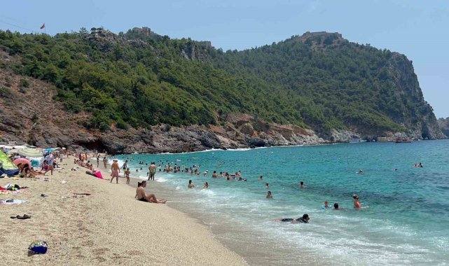 Alanya'da serinlemek isteyen turistler soluğu Kleopatra Plajı'nda aldı