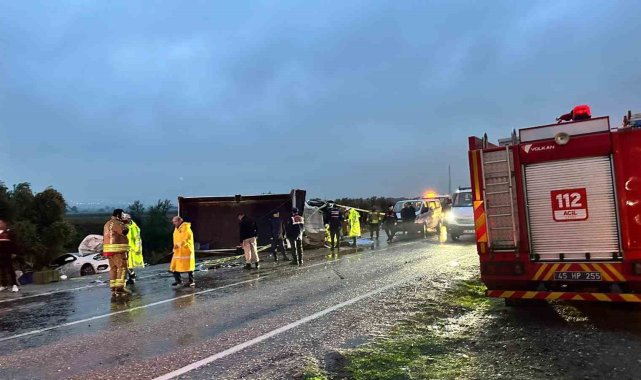 Manisa'nın Alaşehir ilçesinde yağış nedeniyle kontrolden çıkan kamyonetin devrilip karşı şeride geçmesi sonucu otomobille çarpıştığı kazada 2 kişi hayatını kaybetti, 3 kişi yaralandı.