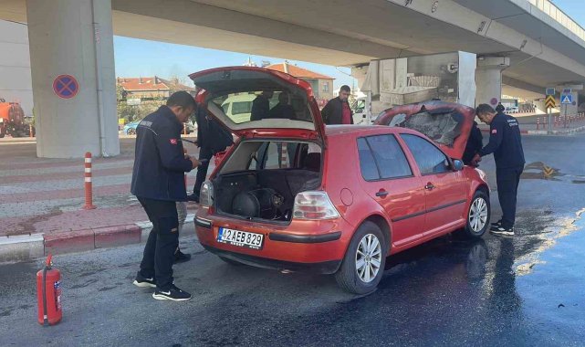Karaman'da seyir halindeyken motor kısmından alev alan LPG'li otomobile ilk müdahaleyi polis ekibi yaptı.Yangın, sabah saatlerinde Hamidiye Mahallesi İbrahim Öktem Bulvarı üzerindeki köprülü kavşakta meydana geldi. Edinilen bilgiye göre, 42 AEB 829 plakalı Volkswagen marka otomobil seyir halindeyken kavşak içerisinde motor kısmından bir anda alev aldı. Durumu fark eden sürücü, aracı durdurarak 112 Acil Çağrı Merkezi'nden yardım istedi. O sırada devriye gezen Asayiş Şube Müdürlüğü Cinayet Büro Amirliği ekibi, yanan aracı fark ederek yangın tüpüyle alevlere müdahale etti. Polis ekiplerinin hızlı müdahalesi sayesinde alevler tüm aracı sarmadan kontrol altına alındı. Daha sonra olay yerine gelen itfaiye ekipleri LPG'li aracın gaz bağlantısını keserek, soğutma çalışması yaptı. Motor kısmı yanan araçta maddi hasar meydana gelirken, yangının şarj dinamosunda kaynaklanan elektrik arızası sonucu çıktığı ihtimali üzerinde duruluyor.