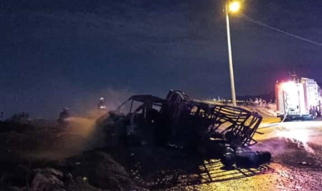 Alev alev yanan mutfak tüpü yüklü kamyonet küle döndü