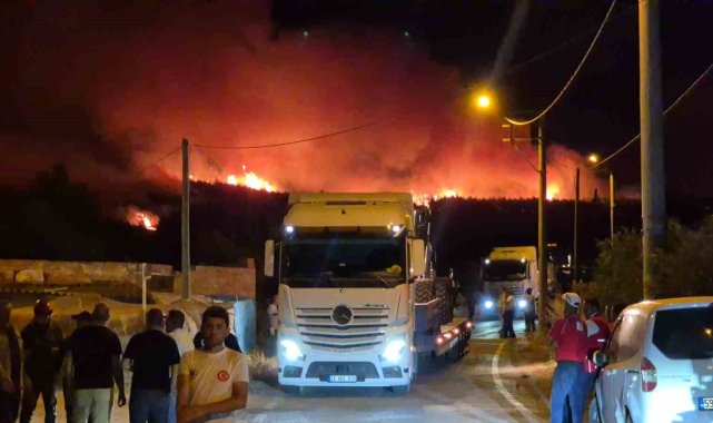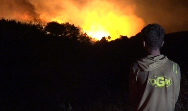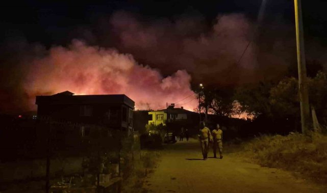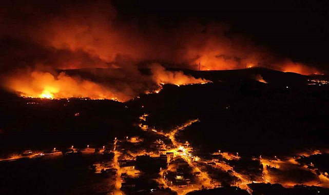 Tekirdağ'ın Şarköy ilçesinde dün başlayan orman yangını sürerken, alevlerin tehdit ettiği 3 köy boşaltıldı. Geceyi gündüze çeviren alevler dron ile havadan görüntülendi.Şarköy ilçesine bağlı kırsal bölgelerde dün saat 14.00 sıralarında başlayan orman yangını, rüzgarın etkisiyle hızla yayıldı. Yangın, Kızılcaterzi Mahallesi'ne kadar ilerleyerek evleri tehdit etmeye devam ediyor. Alevlerin mahalleye yaklaşmasıyla birlikte bölge adeta gündüze dönerken, köy tedbir amaçlı tahliye edildi.3 köy boşaltıldıKızılcaterzi'nin yanı sıra yangın tehdidi altındaki 2 köy daha boşaltılırken, ekiplerin müdahalesi devam ediyor. Alevlerin Kızılcaterzi kırsalına ulaştığı o anlar dron ile havadan da görüntülendi.