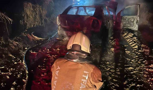 Hatay'da seyir halindeyken yanmaya başlayan otomobil alevlere teslim oldu. Yangında otomobil kullanılmaz hale geldi.