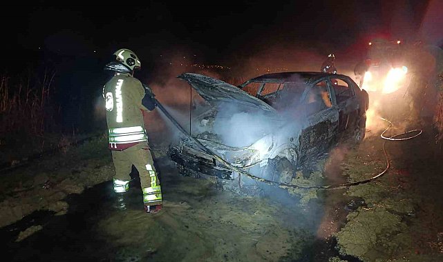 Alevlere teslim olan otomobil kullanılmaz hale geldi