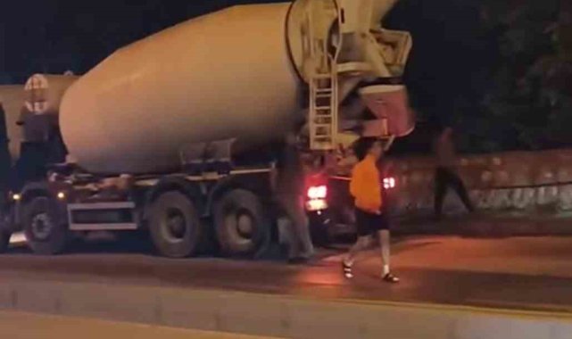 Alevlere teslim olan otomobile mikser sürücüsünden müdahale