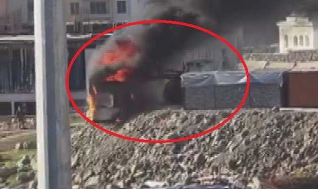 Alevlerin arasına dalan operatör, konteyneri uçurumdan yuvarladı