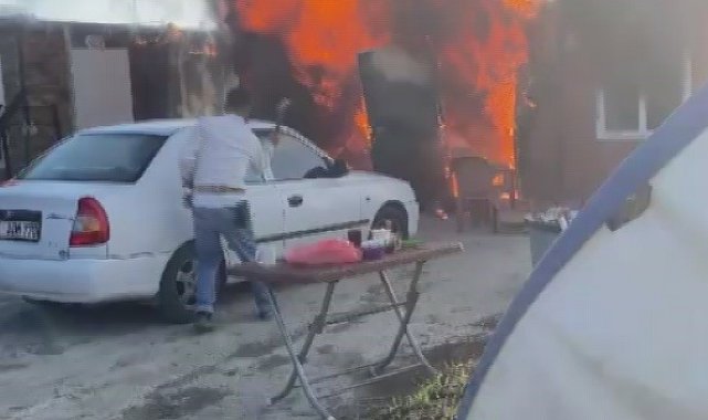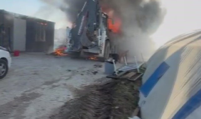 HATAY (İHA) – Hatay'da alevlerin arasına dalan operatör Özkan Oluç, iş makinesiyle yanan konteyneri uçurumdan yuvarladı. Operatör Oluç'un hızlı müdahalesi alevlerin diğer konteynerlere sıçramasının önüne geçti.Yangın, Antakya ilçesi Alazı Mahallesi'nde bulunan bir şantiyede yaşandı. Şantiyede bulunan bir konteyner da, bilinmeyen bir nedenden dolayı yangın çıktı. Şantiyede bulunan işçiler, yanan konteynere müdahale etmeye başladılar. Şantiye içerisinde çalışan operatör Özkan Oluç, iş makinesiyle alevlerin arasına dalarak konteyneri uçurumdan yuvarladı. Alevlerin arasına dalan operatörün, konteyneri uçurumdan yuvarladığı anlar kameraya yansıdı. Uçurumdan yuvarlanan konteyner yanarak kullanılamaz hale geldi. Oluç'un hızlı müdahalesiyse alevlerin diğer konteynerlere sıçramasının önüne geçti."Konteynerlere sıçramasın, can ve mal kaybı olmasın diye aniden iş makinesiyle yanan konteyneri aşağıya attım"Alevlerin arasına dalarak yanan konteyneri uçurumdan yuvarlayan operatör Özkan Oluç, "Konteyner da yangın çıktı. Önce arkadaşlara baktık ve içeride kimsenin olmadığını gördük. Yangın diğer konteynerlere sıçramasın diye iş makinesiyle konteyneri aşağıya saldım. Konteynerlere sıçramasın, can ve mal kaybı olmasın diye aniden iş makinesiyle yanan konteyneri aşağıya attım. Kimseye bir şey olmadı. İş makinesiyle konteyneri direk aşağıya saldım" ifadelerini kullandı.