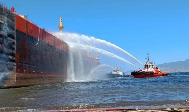 Aliağa'da alevler içinde kalan tanker gemi bu sabah söndürülebildi