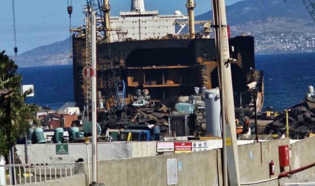 İzmir'in Aliağa ilçesinde Gemi Geri Dönüşüm Tesisleri'nde sökümü devam eden Sloug adlı tanker gemide çıkan yangın, karadan ve denizden yapılan müdahale ile bu sabah tamamen söndürüldü.
