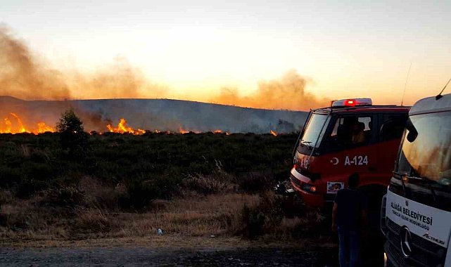 İzmir'in Aliağa ilçesinde otluk alanda çıkan yangın, ekiplerin havadan ve karadan müdahalesiyle kontrol altına alındı.Edinilen bilgiye göre, Hacı Ömerli Mahallesi ile Çaltılıdere Mahallesi arasındaki Mersinlik mevkiinde otluk alanda yangın çıktı. Rüzgarın etkisiyle yangın hızla büyüdü. Çevredeki vatandaşların ihbarı üzerine İzmir Orman Bölge Müdürlüğü, İzmir Büyükşehir Belediyesi İtfaiyesi ve Aliağa Belediyesi'ne ait su tankerleri ile iş makineleri bölgeye sevk edildi. Yangını kontrol altına almak için havadan ve karadan müdahale edildi. Alevler Çanakkale-İzmir Devlet Karayolu'na kadar ulaştı. Yoğun duman ve alevlerin yol kenarına yaklaşması sürücülere zor anlar yaşattı. Görüş mesafesinin düşmesi nedeniyle araçlar yolda ilerlemekte güçlük çekti. Yetkililer, güvenlik gerekçesiyle Çandarlı mevkiinden itibaren trafik akışını otoyola yönlendirdi.Şiddetli rüzgara rağmen çalışmalarına yoğun şekilde devam eden ekipler, yangını 3 saat sonra tamamen kontrol altına aldı. Bölgede soğutma çalışmalarının devam ettiği ve alevlerin tehdit ettiği yolun tekrar ulaşıma açıldığı öğrenildi.
