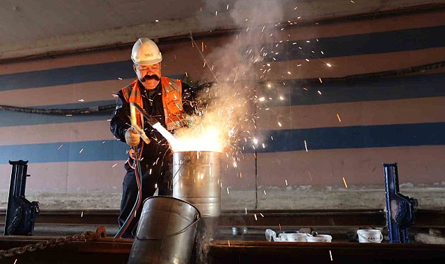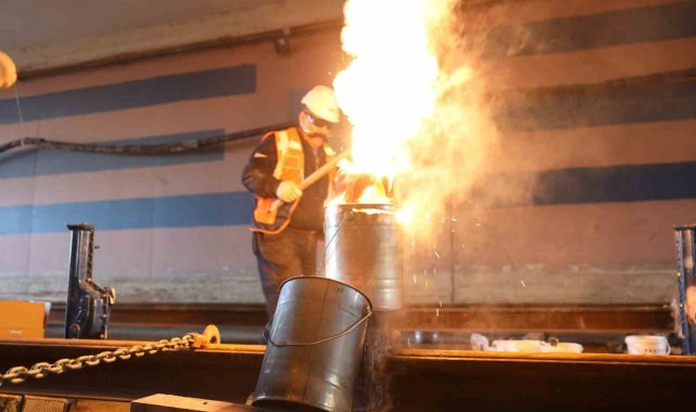 Kocaeli'de yürütülen "Alikahya Stadyum Tramvay Hattı" projesinde döşenen rayların kaynakları yapılmaya başlandı.