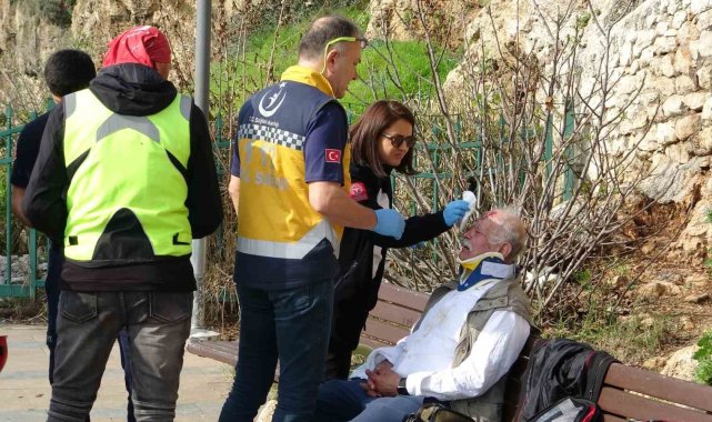 Antalya'da bir kişinin falezlerden düştüğü ihbarı ekipleri alarma geçirdi. Başından yaralanan alkollü şahıs kendisine yardım etmeye çalışan 112 Acil Sağlık görevlisine "Sen de her şeye karışıyorsun" dedi.Olay, saat 12.00 sıralarında Antalya'nın Muratpaşa ilçesi Konyaaltı Caddesi üzerinde bulunan Yavuz Özcan Parkı'nda meydana geldi. 112 Acil Çağrı Merkezi'ne bir kişinin kayalıklardan düştüğü ve mahsur kaldığı ihbarı üzerine verilen adrese itfaiye, polis ve sağlık ekipleri sevk edildi. Kısa sürede olay yerine gelen polis ekipleri parkın girişe yasak olan kayalık bölümünde bir kişinin yattığını gördü. Yaklaşık 3 metrelik patika alandan yuvarlandığı anlaşılan ve vatandaşların yardımıyla bulunduğu yerden çıkartılıp, isminin Muharrem E. (67) olduğu öğrenilen yaşlı adama ilk müdahale, motorize 112 ekibi tarafından yapıldı.Vatandaşların yardımıyla çıkartıldıSağlık görevlisinin kendisine sorduğu sorulara tepki gösteren yaşlı adam "Sen de her şeye karışıyorsun" dedi. Şahsın kaçak alkol kullanmış olabileceği ihtimali üzerine nereden aldığının sorulması üzerine Muharrem E. görevlilere, "Benim kaçakla işim olmaz" cevabını verdi. Alkollü olduğu görülen Muharrem E. ilk müdahalesinin ardından ambulansla kontrol amaçlı hastaneye kaldırıldı. Yaşlı adamı bulunduğu yerden çıkartan vatandaşlardan Samet Tapucu, "Deniz polisi aşağıdan bağırıyordu 'atlama' diye. Ben de aşağıya sessizce indim, tuttum. Kolluk kuvvetleri geldi. Düşmüş ama atacaktı kendisini" dedi.