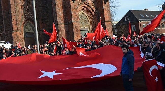 Bremerhaven merkezindeki Büyük Kilise Meydanı'nda düzenlenen gösteriye, Bremerhaven ve çevre illerinden yaklaşık bin 500 Türk katıldı.