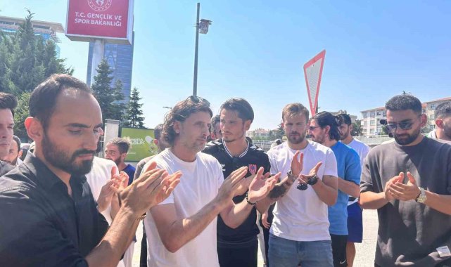 Alt lig futbolcuları, TFF'nin yaş sınırına tepki için GSB önünde toplandı