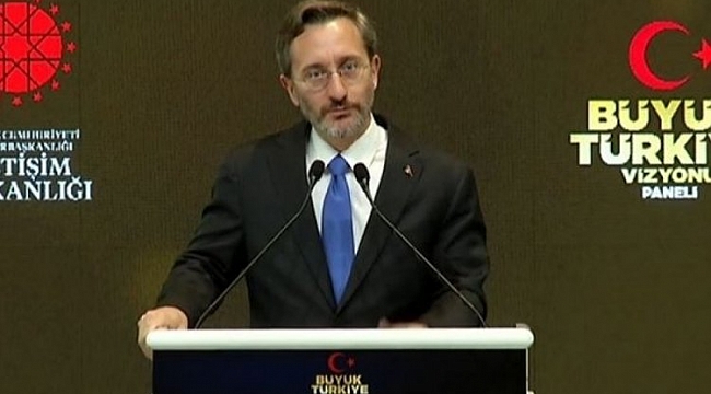 İletişim Başkanı Altun, Başkanlıkta düzenlenen 'Büyük Türkiye Vizyonu Paneli'nde konuştu. Altun, 'Büyük Türkiye Vizyonu'nu heyecanla inşa etmenin arifesinde olduklarını belirterek, "Bugüne kadar geleceğe dönük olarak Türkiye'yi güçlü ve iddia sahibi bir ülke konumuna getirecek projeleri hayata geçirmek, hayallerimizi ve hedeflerimizi gerçeğe dönüştürmek üzere yolumuzda hep kararlılıkla ilerledik. Bundan sonra da devlet millet el ele yeni yüzyılında Türkiye'mizi, ilk yüzyılında kat ettiği aşamanın çok ötesine ulaştırma, milletimizden aldığımız güçle çok daha büyük başarılara erişme arzusundayız" diye konuştu.