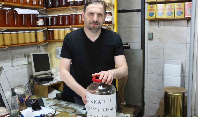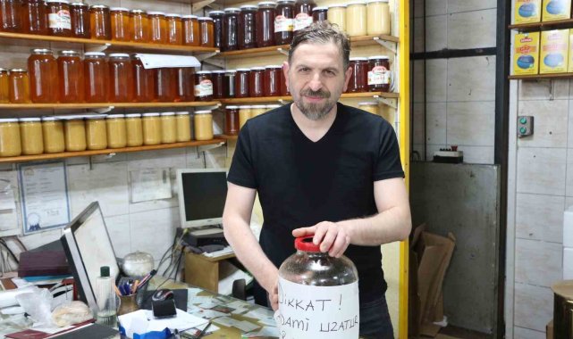 Rize'de deli balın kontrolsüz tüketimine dikkat çekmek isteyen esnafın bal kavanozuna yazdığı 'Adami uzatur' ifadeleri görenlerin ilgisini çekti.Genellikle Karadeniz bölgesinde, özellikle de Türkiye'nin doğu Karadeniz bulunan ve "orman gülü" olarak literatüre geçmiş komar çiçeğinden üretilen deli balın sağımına başlandı.Halüsinojenik ve toksik özellikler taşıyan deli bal faydalarının yanı sıra kontrolsüz tüketimi halinde zararlı da olabiliyor. Küçük dozlarda tüketildiğinde kısa süreli sersemlik, düşük tansiyon, baş dönmesi gibi etkiler oluşturan deli bal yüksek dozlarda ciddi zehirlenmelere yol açabildiği gibi ölümcül de olabiliyor. Bilimsel olarak önerilen bir tedavi yöntemi olmayan deli bal geleneksel bir anlayışla düşük tansiyon, mide rahatsızlıkları ve cinsel gücü artırmak gibi amaçlarla kullanılıyor. Dozu ayarlanmadığı taktirde ise mide bulantısı, kusma, bayılma, kalp ritim bozuklukları gibi rahatsızlıklara yol açıyor.Deli bala esprili satışDeli balın bu özelliklerinden yola çıkan Rizeli esnaf ise işe espri katmak istedi. 21 yıldır balcılık yapan Ali İhsan Yazıcı, deli bal kavanozunun üzerinde olayın ciddiyetini anlatabilmek için 'Adami uzatur. Reçetesiz satılır' ifadelerini yer aldığı bir not astı.Görenlerin uzatma terimini boy zannettiği yazının içeriği ise herkesi hem güldürdü hem de düşündürdü. Çünkü Rize ağzı ile yazılan bu yazı 'Bayıltır' hatta 'Öldürür' anlamı taşıdığını öğrenen herkes olayın ciddiyetini daha iyi anlamış oldu."Deli bal kahvaltıda tüketlmez"Deli balın kahvaltı ve normal tüketim için uygun olmadığını dile getiren Yazıcı "Bu balımız deli baldır, yaban gülüdür sözlükteki ismi. Bu balın bir özelliği var, tansiyonu direkt sıfıra indiriyor yani bilinçli tüketilmesi lazım. Çok yüksek kesimlerde yaylalarda olur, kullanırken biraz dikkatli olmak gerekiyor. Bu bal ilaçlık olarak tüketiliyor. Kahvaltıda biraz ağırdır yani kahvaltılık değildir. Çok özel, nadide bulunmayan bir baldır. Tansiyon hastalarına öneriyoruz. Direkt tansiyonu sıfıra indirebilir. O yüzden biraz tüketirken dikkatli olmak gerekiyor" ifadelerini kullandı.Deli balın sağlık hassasiyetini espri ile anlatmak istediklerine vurgu yapan Yazıcı "Uzatır da ki mecazımız ise Rize'de '2.80 adamı uzatır' diye bir deyimimiz var. Ona nazire olarak onu yazdık. Bayıltır cinsinden bir anlamı vardır. Merak ediyorlar nasıl uzatıyor diye, bizde diyoruz 'Ye de görürsün nasıl uzanıyorsun' diye. Genelde boy uzatır diye lanse ediyorlar işin doğrusu da bizde bir espri katmak istedik balımıza" şeklinde konuştu.
