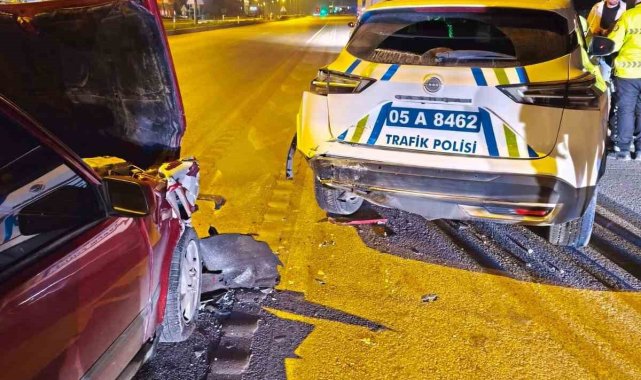 Amasya'da alkollü sürücünün kullandığı otomobil, alkol denetiminde polis otosuna çarptı