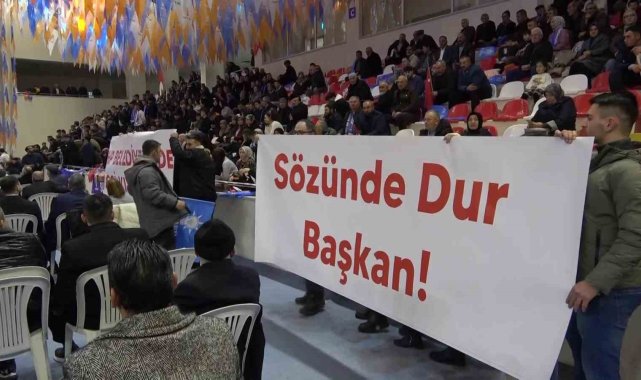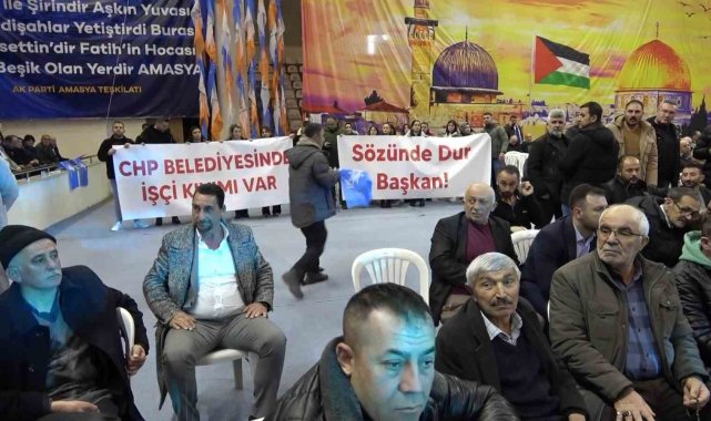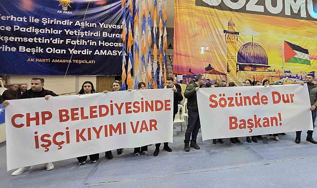 Amasya'da CHP'li belediyenin işten çıkardığı işçiler, AK Parti kongresinde pankart açtı: "Sözünde dur başkan"
